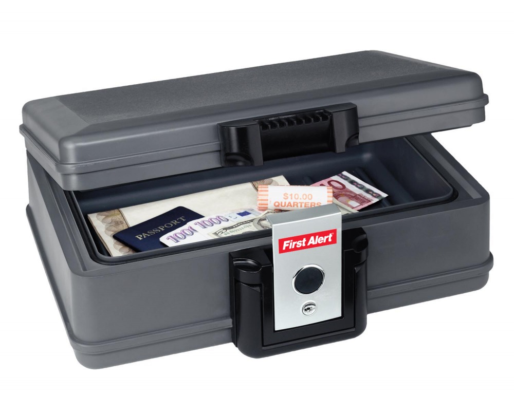 Die Dokumentenbox von First Alert schützt Ihre Dokumente, Medien und Wertgegenstände zuverlässig gegen Feuer und Wasser. Sie ist bei einer Temperatur bis zu 860° C mindestens 30 Minuten lang widerstandsfähig, somit sind Ihre Wertgegenstände im Brandfall sicher gelagert. Auch Wasser kann der Dokumentenbox nichts anhaben, denn selbst bei komplettem Eintauchen bleibt sie wasserdicht. Sie ist sicher mit einem Klammerverschluss verschlossen, zu welchem 2 Schlüssen gehören, mit denen sich die Box abschließen lässt. Ein praktischer Tragegriff ermöglicht einen komfortablen Transport.
